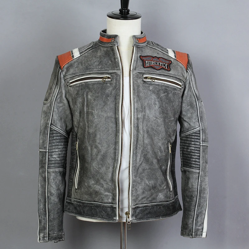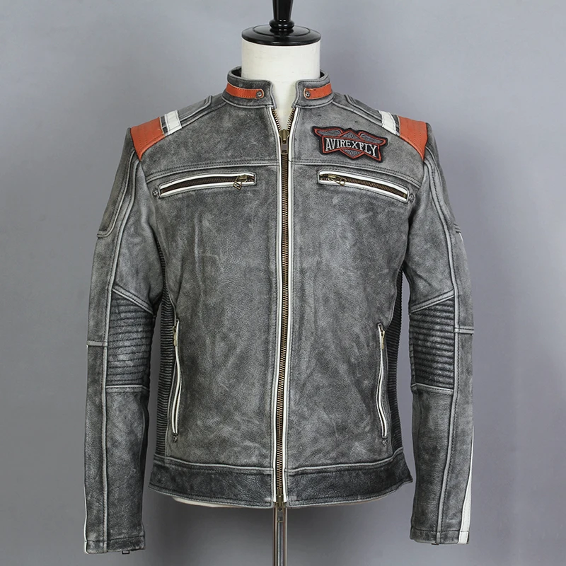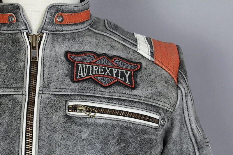 AVIREX FLY Fashion Mens Vintage Genuine Motorcycle Slim Fit Skull Leather Men Black Biker Jacket