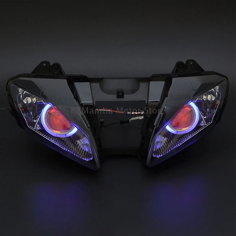 Motorcycle Custom HID Projector Headlight Assembly Angel Eye LED Headlight For Yamaha YZF R6 08-15 Headlamp Faros Led Moto Farol